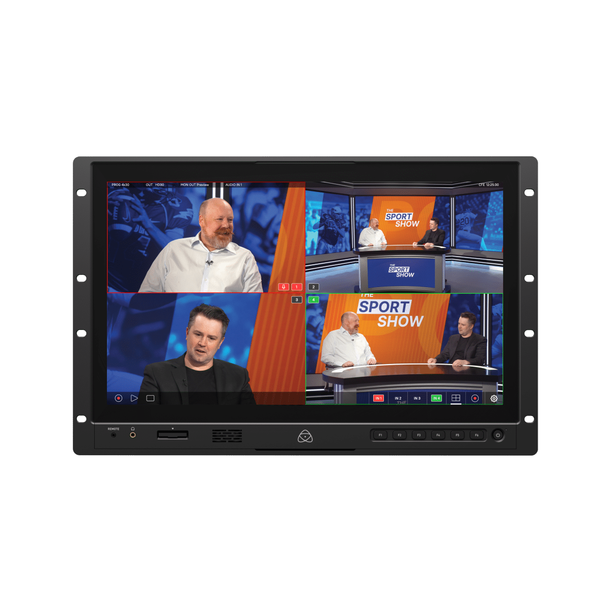 Rack mountable 19-inch, 4K HDR DCI-P3 monitor-recorder-switcher for live production, video village and broadcast