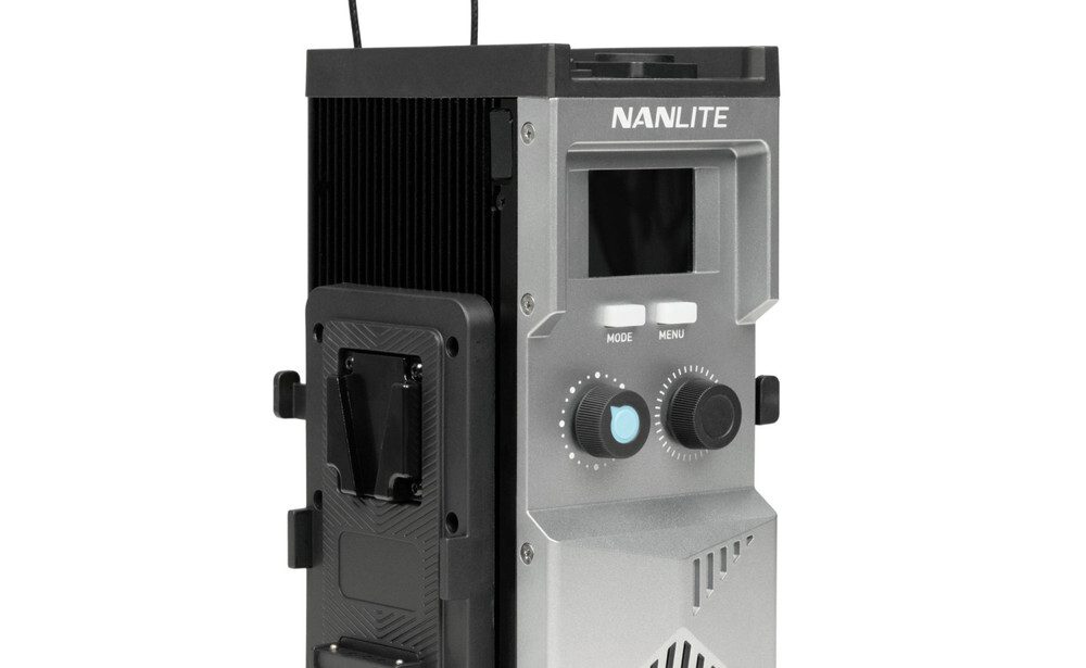 The Nanlite FC PowerController is an optional accessory for the FC-300B, FC-500B, and FC-500C LED spotlights that lets you use them on battery power. It features two V-Mount battery plates