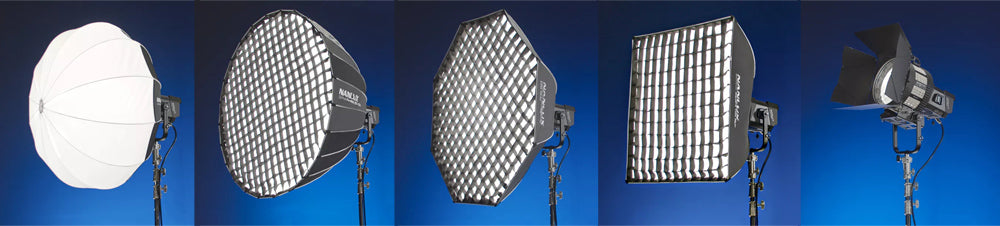 The Evoke 1200 is compatible with a selection of lighting shaping tools, accessories and modifiers. The large aperture and sturdy fixings of the NL mount allows the user to quickly switch between optics to sculpture, shape and modify the output with absolutely no compromise in beam quality, color or intensity.